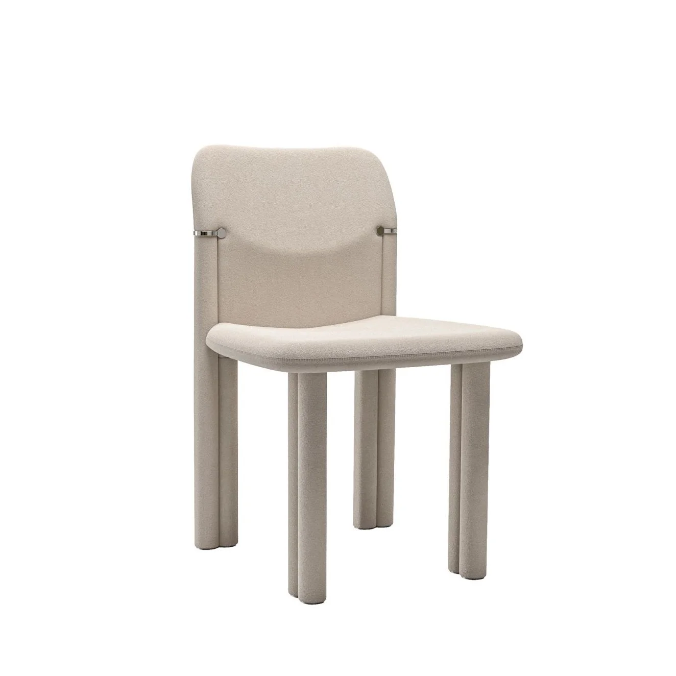 In Sempronia, circular elements interlock into a double circle that evokes the signature of the great Maestro – Tobia Scarpa – who designed it. Paired legs, created by the intersection of two cylinders, extend to the backrest, connected by a slender metal armrest that merges harmony and functionality.